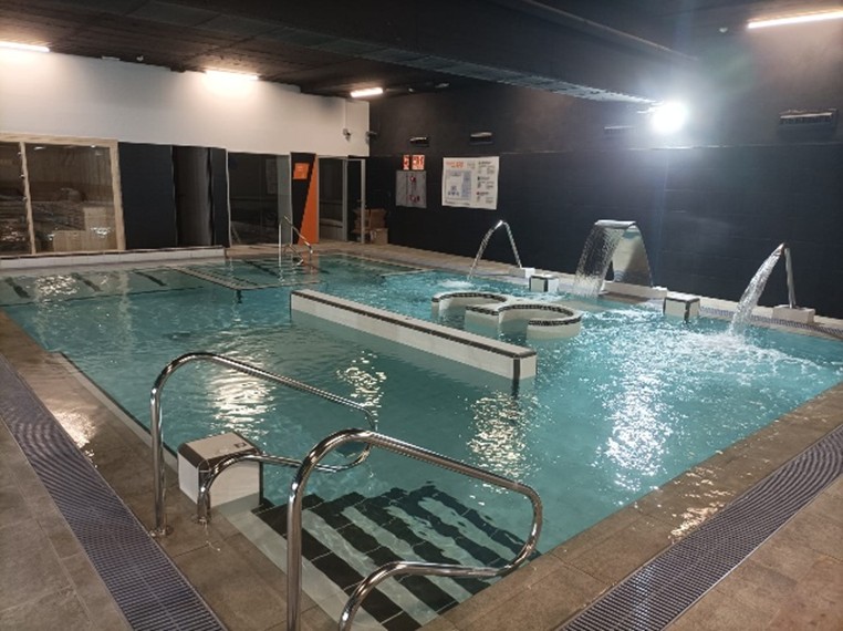 El centro se compone de distintas salas de uso deportivo, piscina interior con zona de nado, aprendizaje y SPA, zonas comunes, área administrativa, aparcamiento y zonas técnicas.